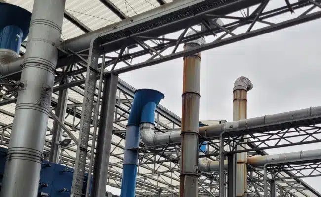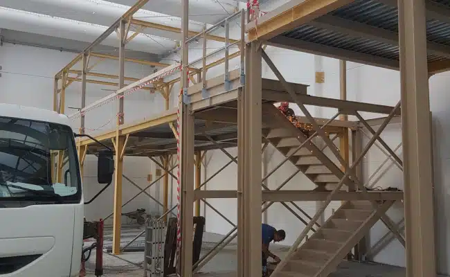 Inserimento in fabbricati esistenti di strutture metalliche a supporto degli impianti produttivi e realizzazione di nuovo blocco scala interno allo stabilimento.