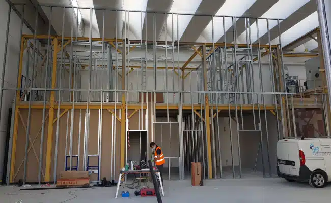 Interventi locali all’interno dello stabilimento adibito alla produzione di microcomponenti meccanici di alta precisione, al fine dell’eliminazione delle vulnerabilità sismiche presenti nelle strutture prefabbricate e realizzazione di soppalchi e supporti agli impianti dello stabilimento mediante telai e travi reticolari in acciaio con solai hi-bond.