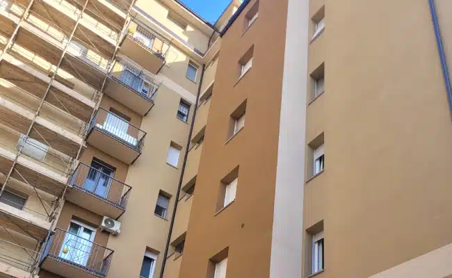 Esteso intervento di efficientamento energetico per un condominio di grandi dimensioni, all’interno delle agevolazioni fiscali SUPERBONUS 110%. L’intervento di efficientamento energetico ha riguardato gli isolamenti termici delle strutture verticali, la sostituzione degli infissi e la sostituzione del generatore centralizzato. L’intervento è stato accompagnato da un intervento di miglioramento sismico per antiribaltamento di strutture murarie.
